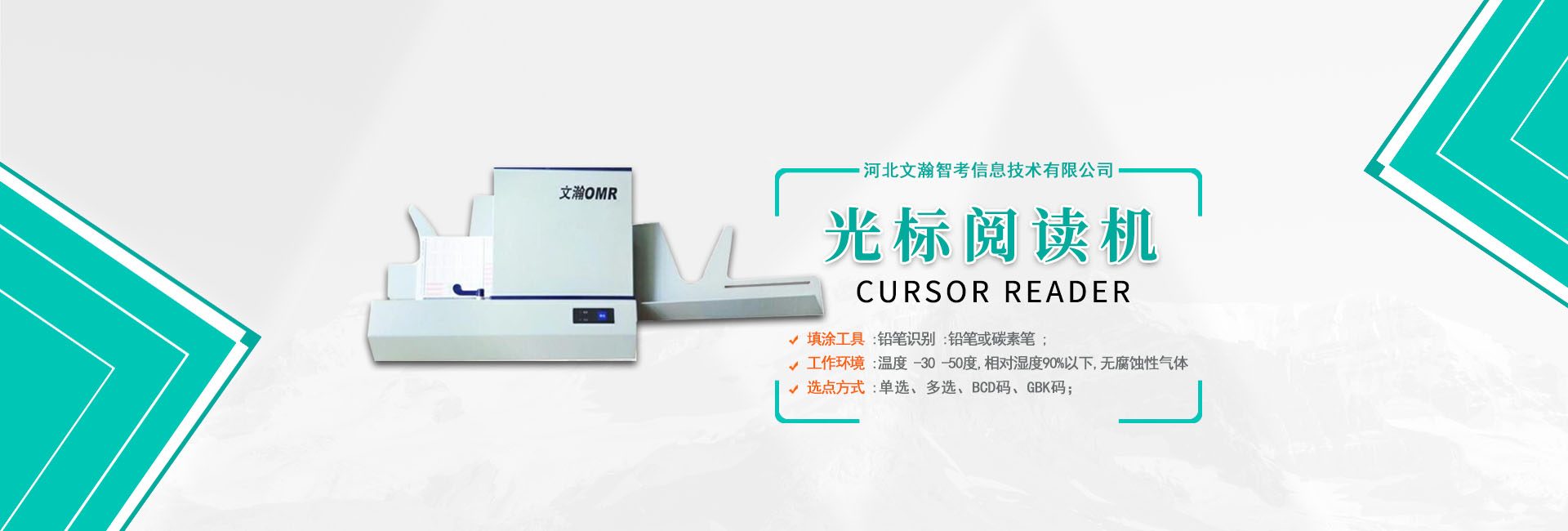 河北文瀚智考信息技術有限公司是一家專注教育的科技創(chuàng)新公司。本公司主營四大板塊產(chǎn)品:網(wǎng)上閱卷系統(tǒng)、光標閱讀機、答題卡和互動觸控液晶一體機。公司在數(shù)據(jù)處理產(chǎn)品領域(OMR)推出了一系列具有快捷,簡便,實用產(chǎn)品,···
